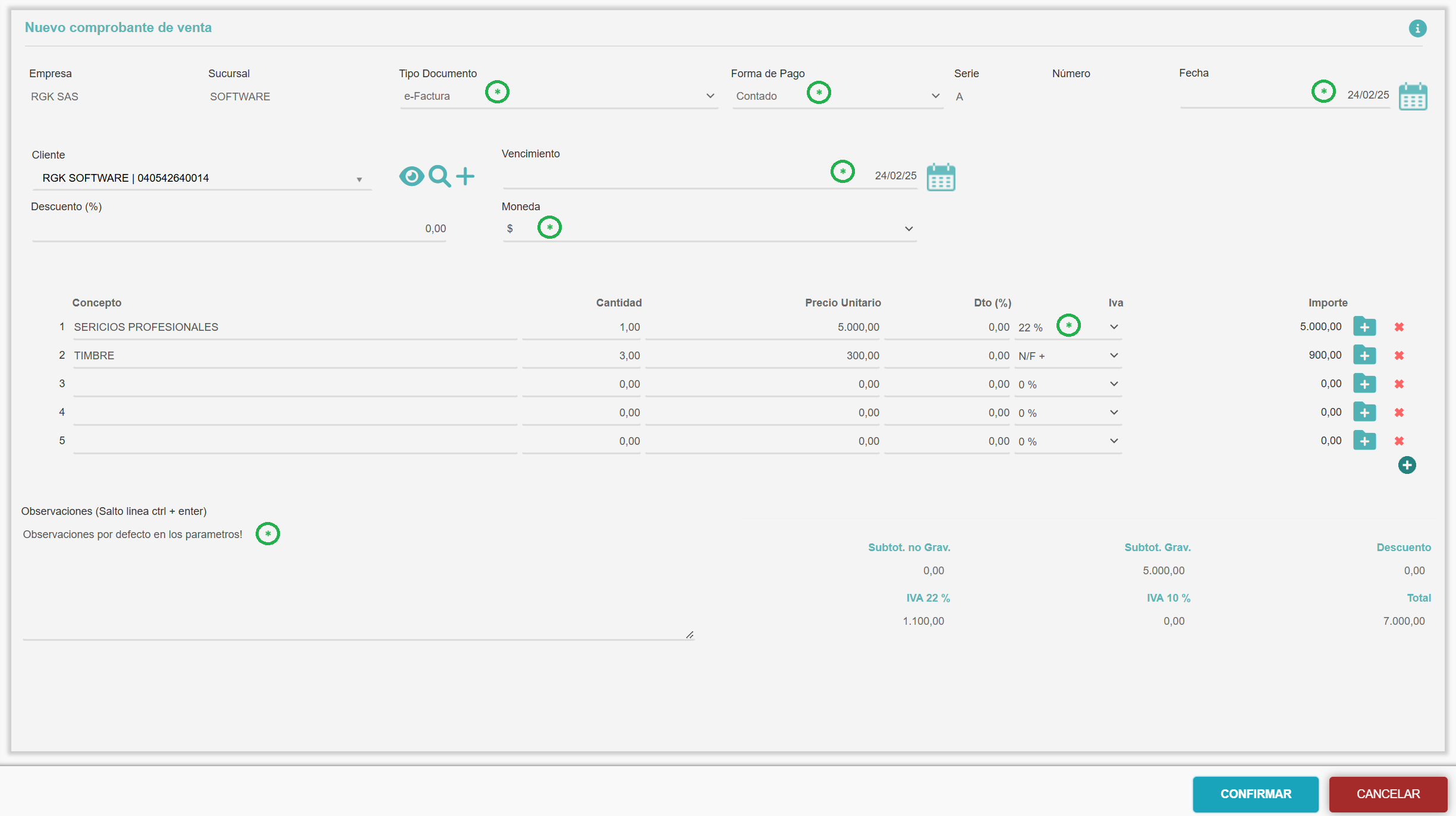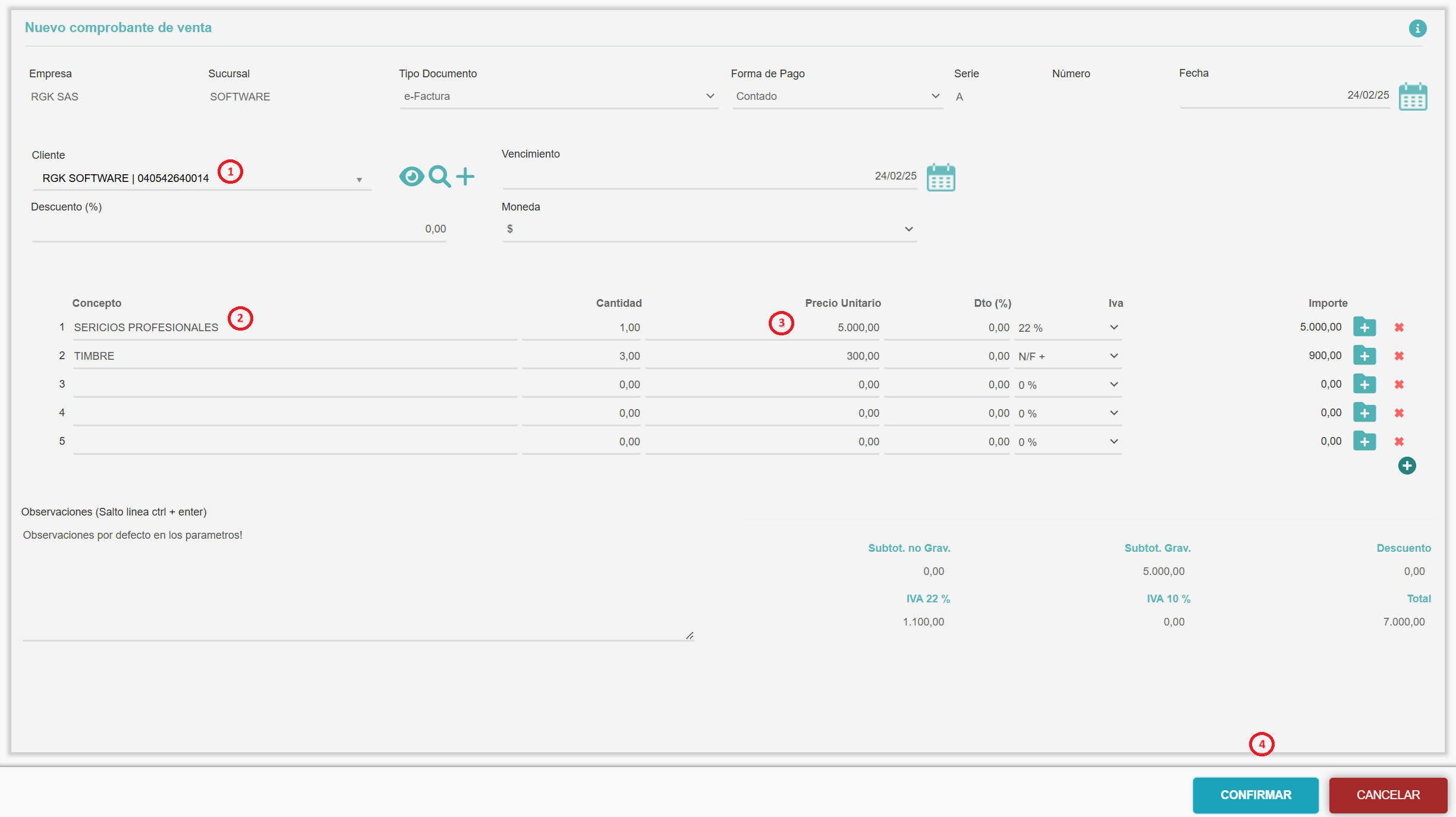 , pré-cargado según preferencias , puedes cambiarlo por cada concepto del comprobante.
