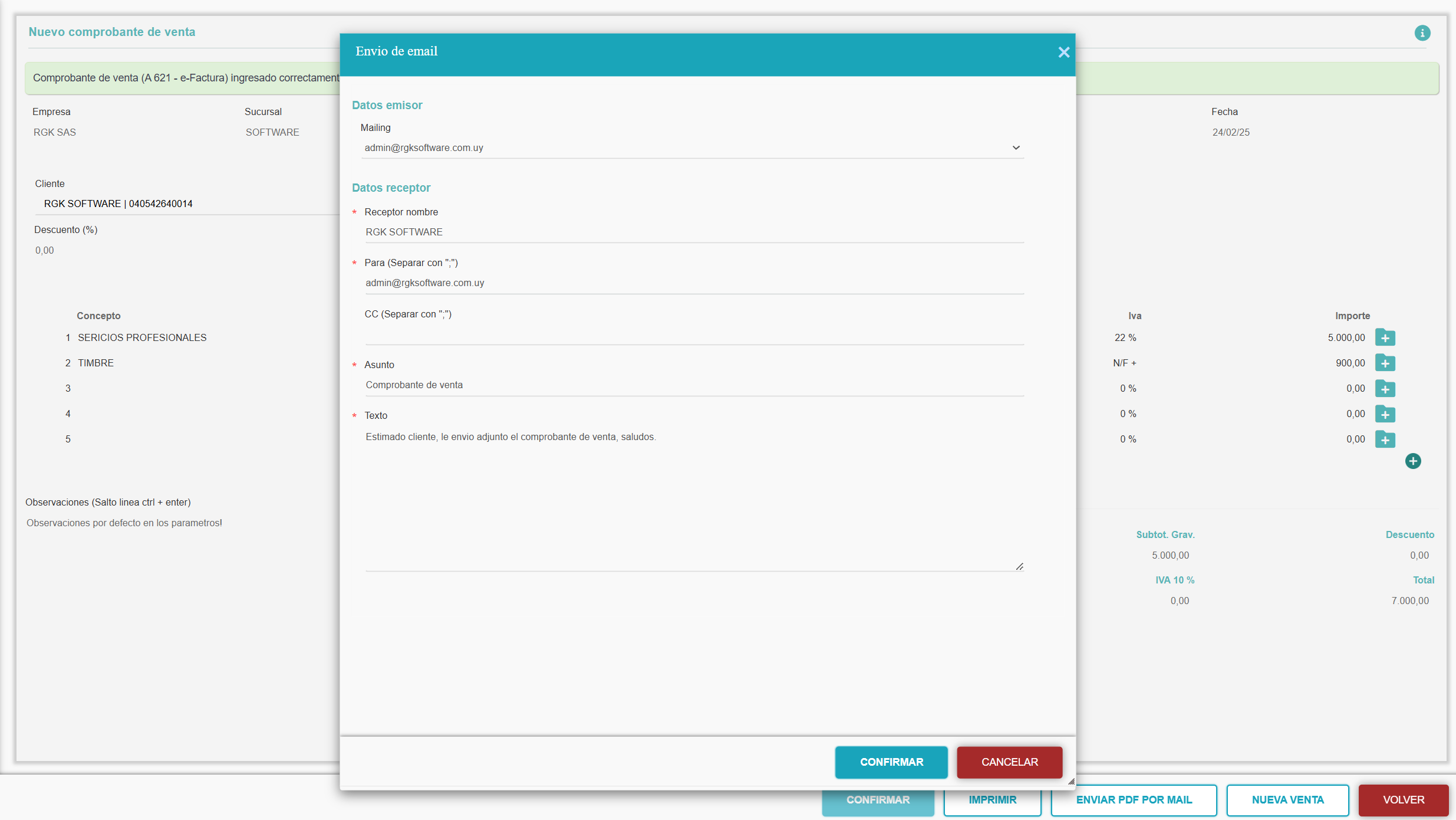 Al confirmar se habilita comprobante en formato PDF para imprimir o enviar.